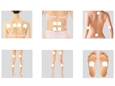 Body parts: waist, back, arm, leg, joint, shoulder, adducter and gluteus, chest, belly, feet