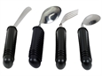Set of 4 pieces (knife, fork, tea and table spoon). Made in stainless steel with thick, ribbed rubber handle (11 cm) for easy grip.