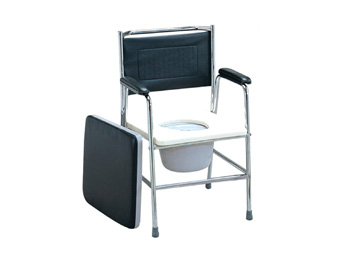 Chromed steel chair frame, with plastic detachable commode seat.