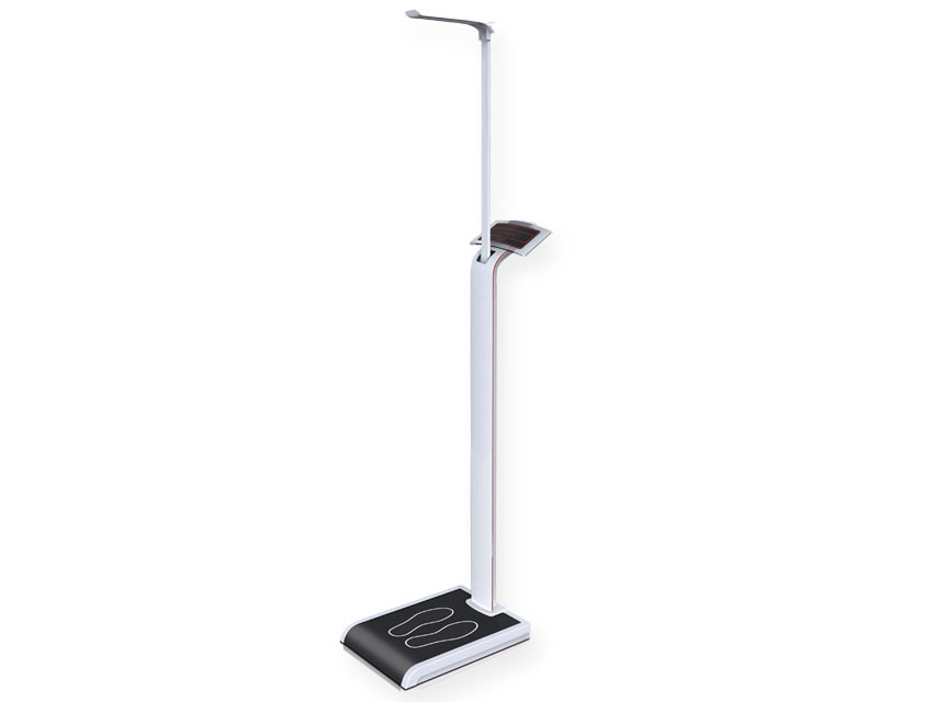 Scale with integrated height rod Soehnle 7831 with stand and height rod switches automatically from kg to cm if the height rod is raised. Patients can be simultaneously weighed and measured.