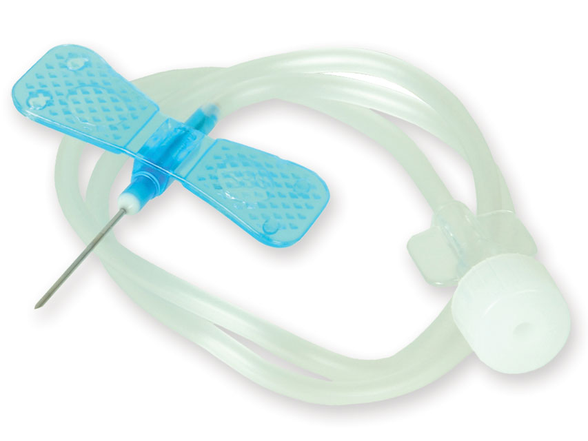 The scalp vein set needles are provided with soft flexible grained wings. The tube is made of 30 cm PVC with luer-lock.