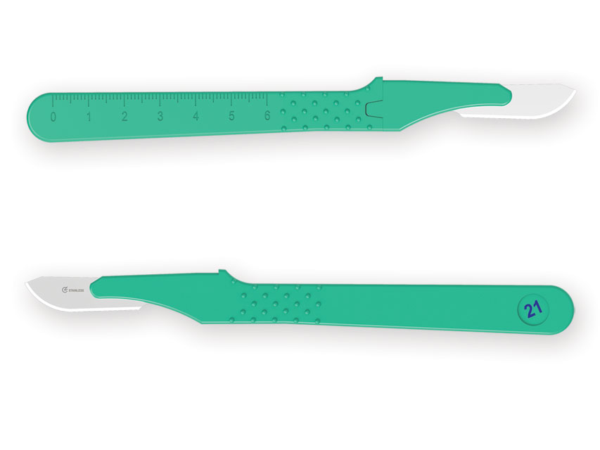 S/S blade fitted into an ABS plastic handle. Individually packed in sterilized envelope with safety blade guard.